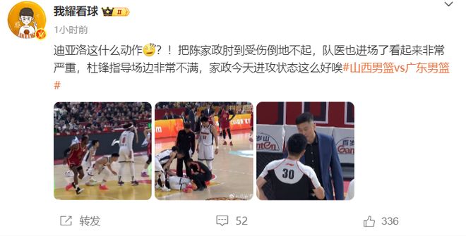 廣東自媒體:這迪亞洛什么動(dòng)作?肘擊陳家政倒地不起,隊(duì)醫(yī)進(jìn)場(chǎng)看起來非常嚴(yán)重。(結(jié)果并不嚴(yán)重,陳家政末節(jié)還打了7分鐘)