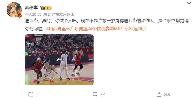 麥穗豐:迪亞洛做個(gè)人吧,現(xiàn)在不只是廣東覺得他動(dòng)作大,是整個(gè)聯(lián)盟都覺得你有問題。
